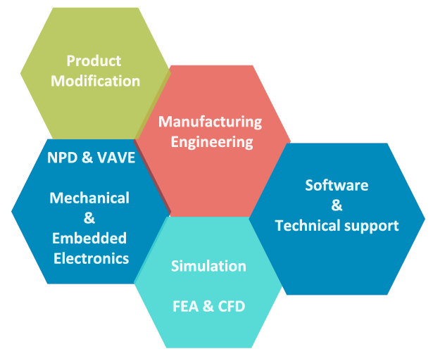 Inbuilt, Value Analysis and Value Engineering (VAVE) Framework & its capabilities “Competitive benchmarking, Functional analysis, Cost modelling, etc” add Margin improvements, differentiated solutions, etc for Customer’s current products. Apart from this, FEA & CFD analysis capabilities acts as an enabler in accelerating product development.
